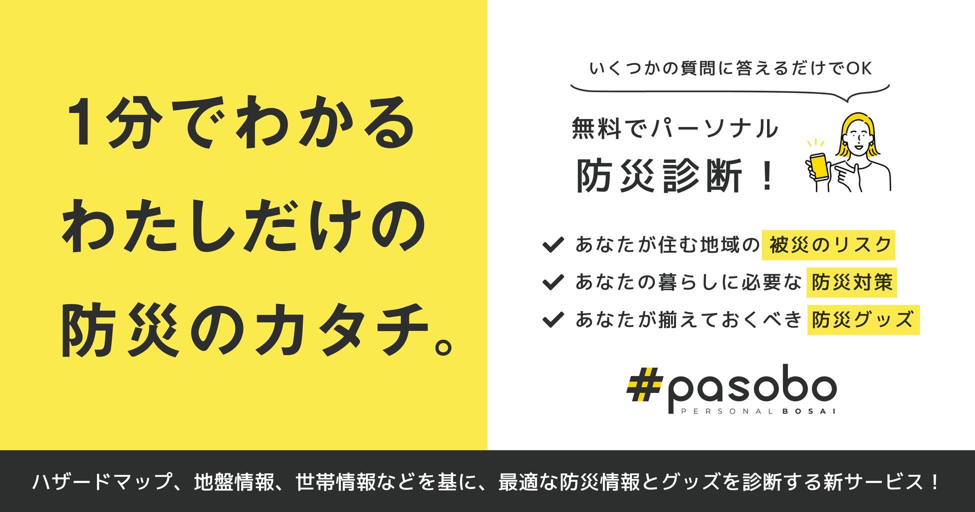 2023年1月17日(火)、自分に必要な防災グッズが1分でみつかるパーソナライズ防災サービス「pasobo(パソボ)」のβ版を1月17日にリリースしました。